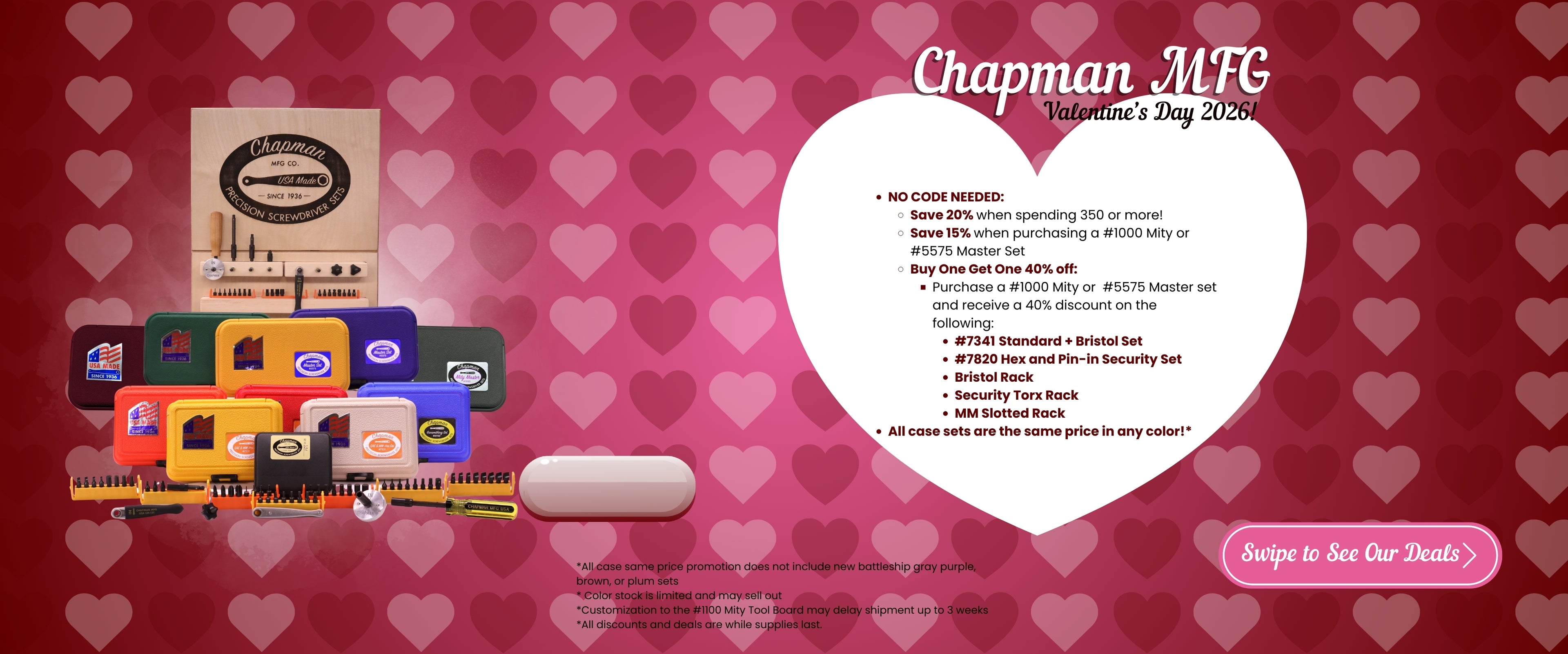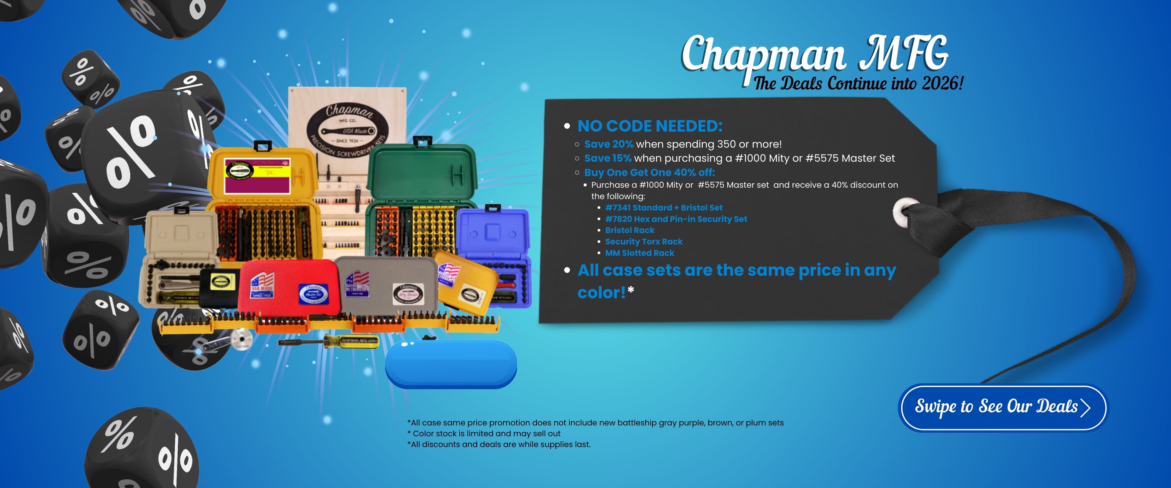 Made in the USA for over 85 years, Chapman provides a variety of screwdriver sets for industrial assembly, maintenance, home repairs, and more. From our famous mini ratchet to our Master set, you will surely find the right fit for your precision job!